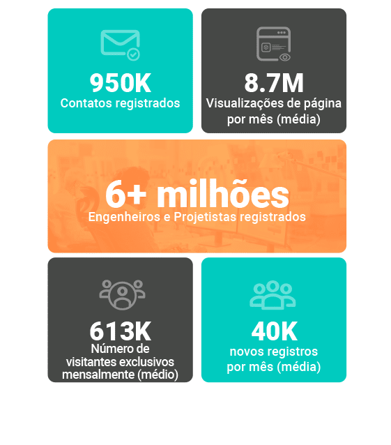 - Marketing direcionado por e-mail: selecione seu público alvo entre mais de 950.000 engenheiros e projetistas opt-in. Gere leads, aumente o tráfego do site e promova seus produtos.
