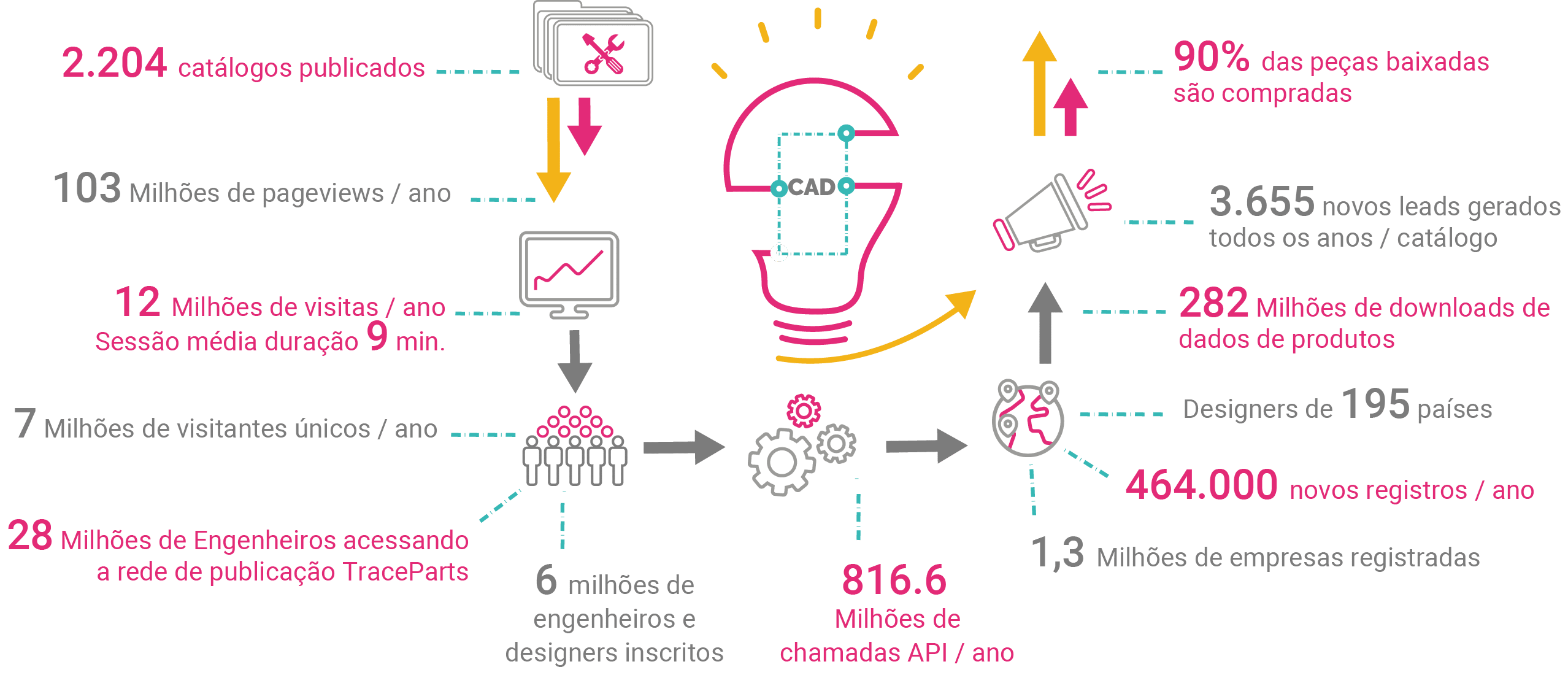 Indicadores-chave de desempenho (KPIs) da plataforma de conteúdo CAD da TraceParts