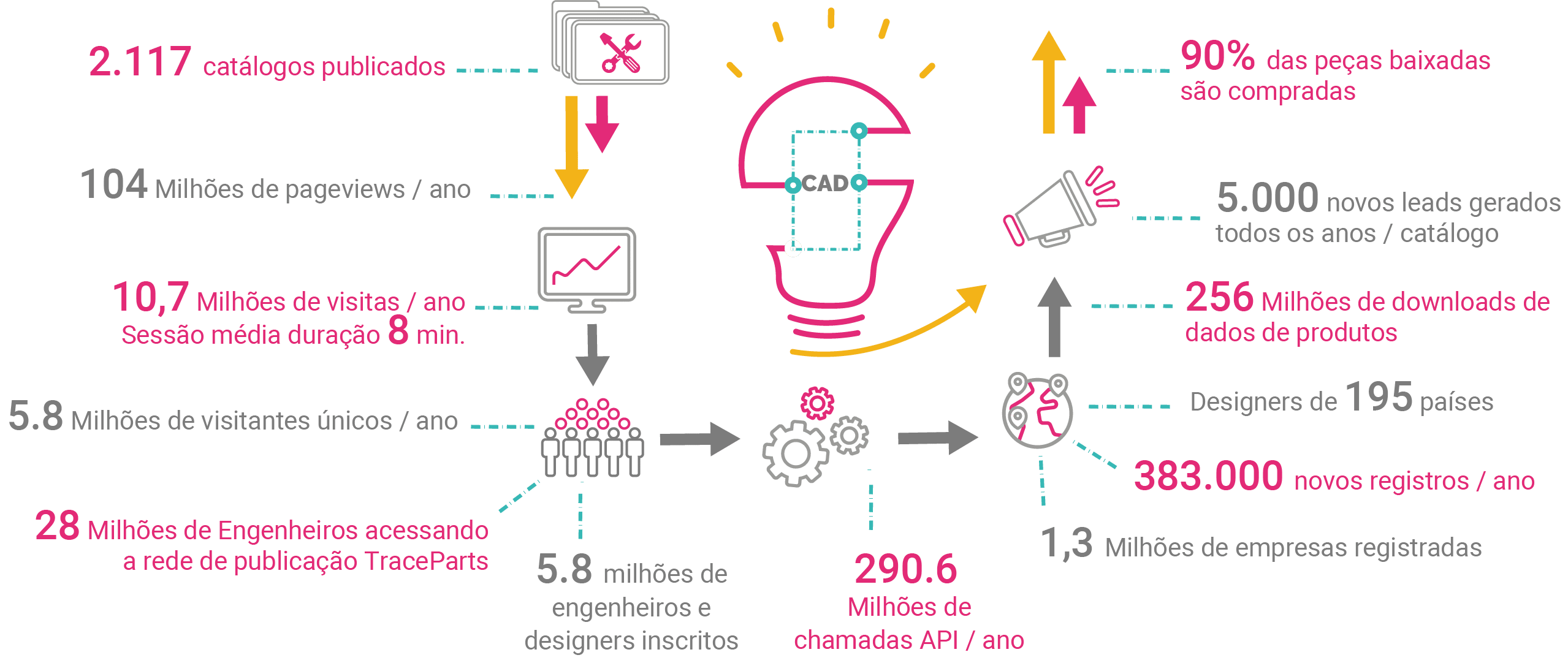Indicadores-chave de desempenho (KPIs) da plataforma de conteúdo CAD da TraceParts