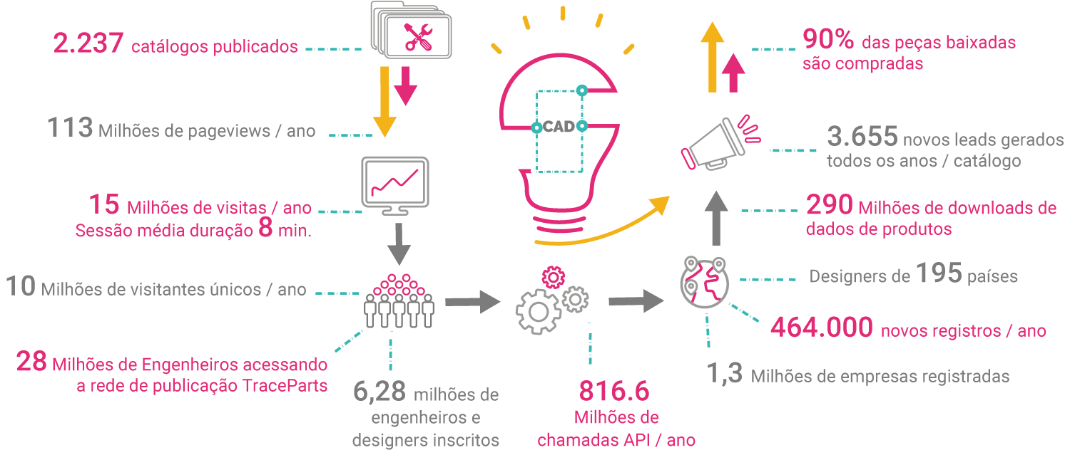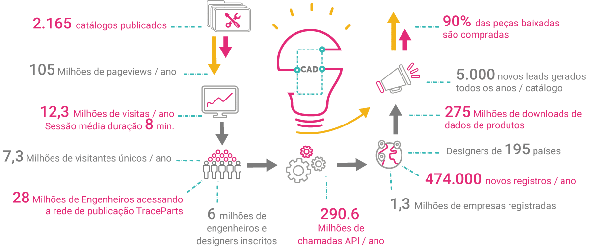 Em 2001, a TraceParts lançou a biblioteca on-line de componentes 3D e, hoje, essa plataforma de conteúdo CAD baseada em nuvem tem6 milhões de Engenheiros e projetistas registrados.