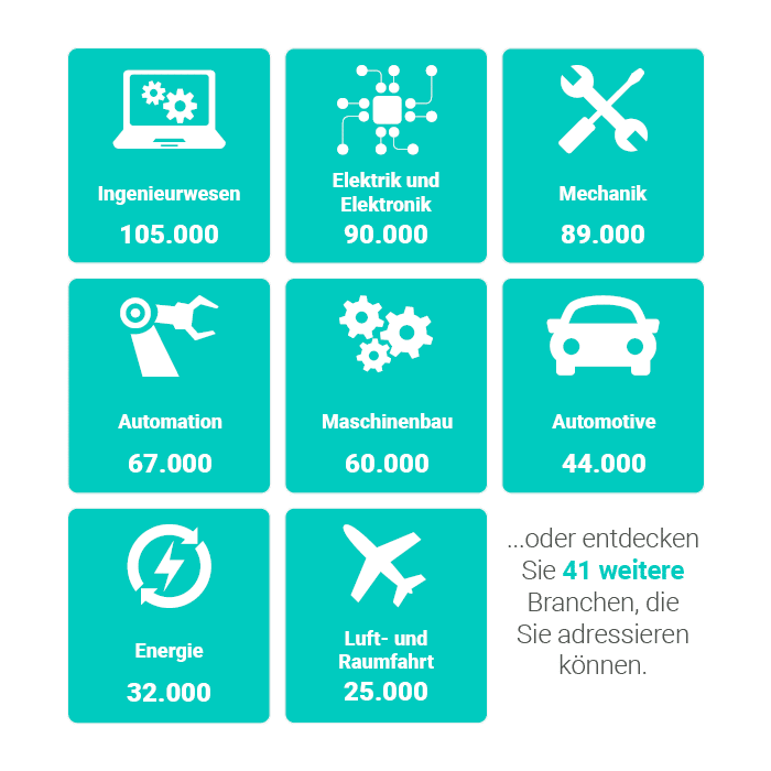 Dank unserer präzisen Segmentierung erreichen Sie Ihre passenden Unternehmensprofile.
