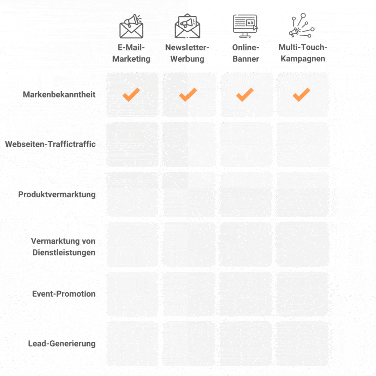 - Multi-Touch-Kampagnen über mehrere Kanäle: Mit der kombinierten Performance der Online-Marketing-Lösungen von TraceParts können Sie Ihre Zielgruppe auf verschiedenen Kanälen gleichzeitig erreichen. Maximieren Sie Ihre Reichweite durch zielgruppenorientierte Werbebotschaften z.B. mittels E-Mail-Kampagnen kombiniert mit Online-Bannern. So sorgen Sie dafür, dass Ihre Marke in jeder Phase der Customer-Journey über mehrere Kanäle hinweg sichtbar wird.