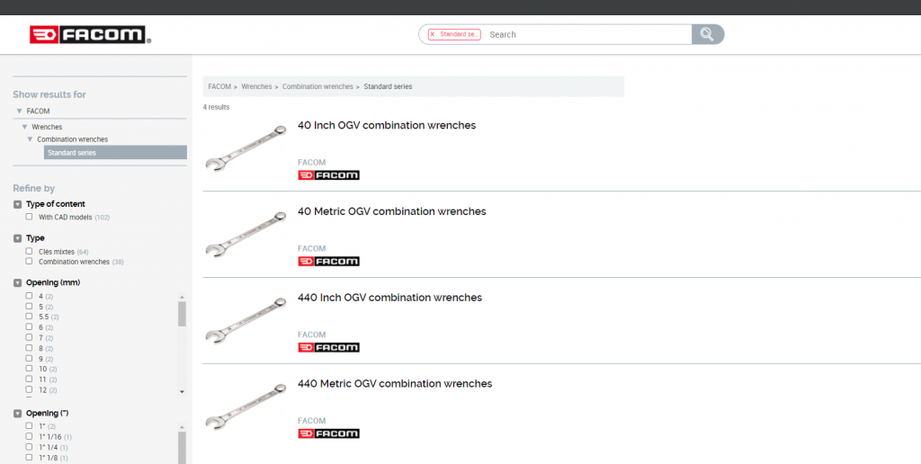Der Katalog von Facom beinhaltet mehrere Tausend Teilenummern. Es wurden also die gängigsten Teile ausgewählt: Schlüssel, Knarren, Hülsen, Drehmomentschlüssel und Schraubendreher sind Bestandteil der ersten Bibliothek, die auf der Website www.traceparts.com angeboten wird. Dieser Katalog wird regelmäßig auf den neuesten Stand gebracht und erweitert, wie z.B. in Kürze durch Zangen und spezifische Werkzeuge für den Luftfahrtbereich.