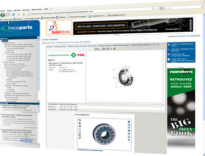 TraceParts leveraged the SolidWorks openness to develop an extensive library of standard SolidWorks-native 3D parts. Designers from all industries, and especially those involved in Industrial Machinery, Tooling, Automotive and Aerospace design, benefit from all the most commonly used components from the largest names of the mechanical and electrical industries: Advantech, Asco Numatics, Bosch Rexroth, Cepex, CGI, Contrinex, Dirak, Euchner, Facom, Ganter, GGB, Halder, IFM, Igus, INA/FAG, Kabelschlepp, Legrand, Legris, Mädler, Misumi, Nozag, Schmalz, Schmersal, Schneider Electric, Sherex, SNR, Stauffenberg, TEA, Trelleborg, Vanel and more.
