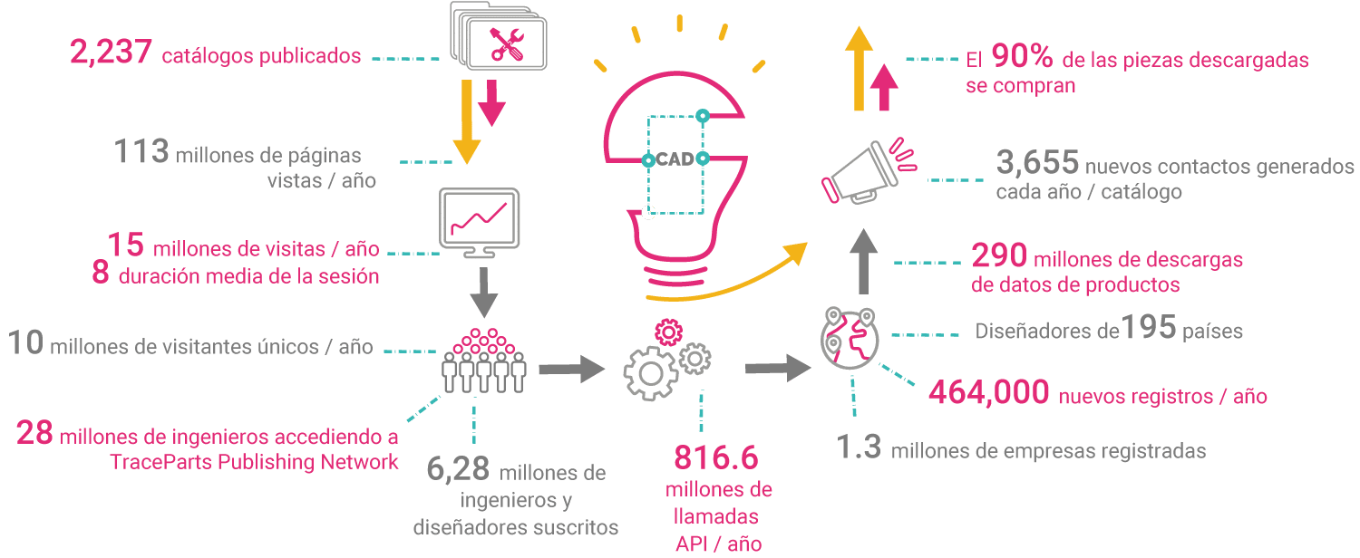En 2001, TraceParts lanzó su biblioteca en línea de componentes 3D y, en la actualidad, esta plataforma de contenido CAD basada en la nube alardea de 6 millones de ingenieros y diseñadores de todo el mundo.