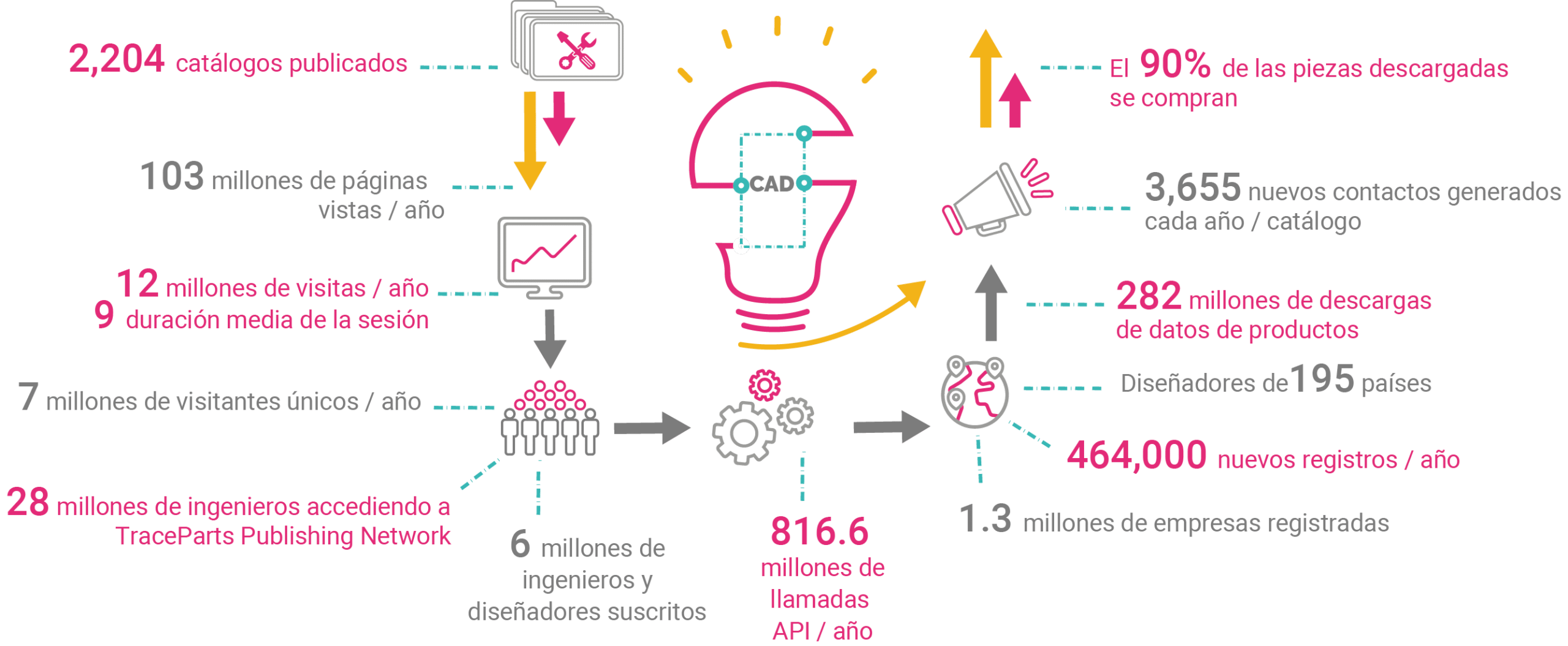 Indicadores claves de rendimiento (KPI) de la plataforma de contenido CAD de TraceParts