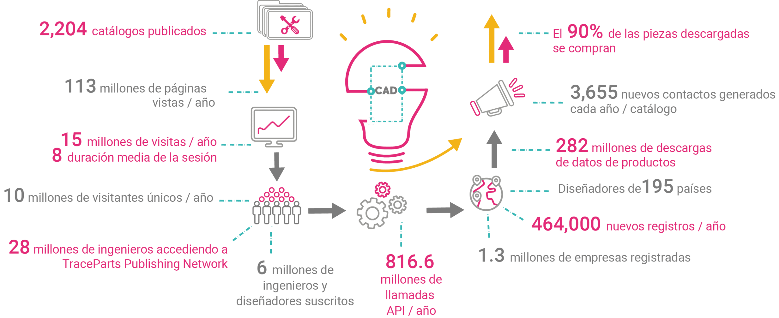 Indicadores claves de rendimiento (KPI) de la plataforma de contenido CAD de TraceParts