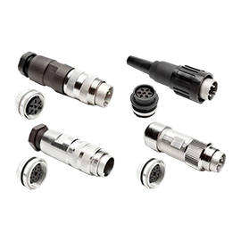 Comprenant un raccord à vis métallique, un raccord à baïonnette en plastique, une coque arrière en métal ou en plastique et une bague de verrouillage en métal ou en plastique, et une protection jusqu’à IP69K. Disponibles en cinq séries : A, B, D, D+ et Q. Les dispositions de contact sont de 2 à 8, 3 à 8, 12, et 14 positions pour le sertissage et la soudure.