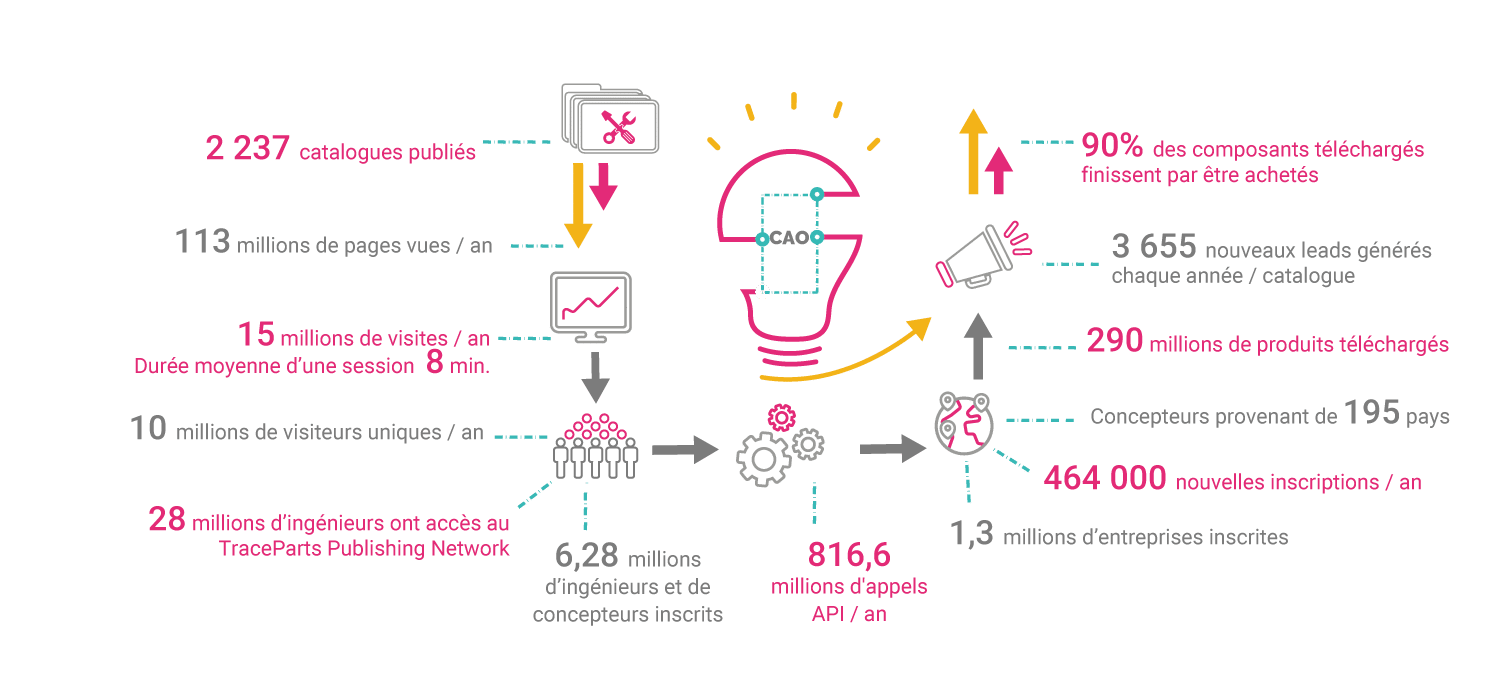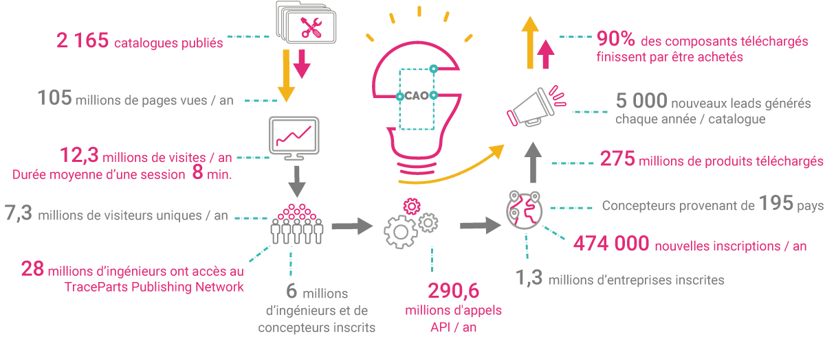 En publiant vos catalogues de produits avec TraceParts, vous bénéficiez d’une incroyable visibilité qui vous aidera à démultiplier vos ventes !