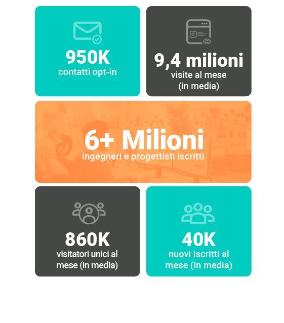 Trova il tuo pubblico nella nostra community di oltre 6 milioni di ingegneri e progettisti