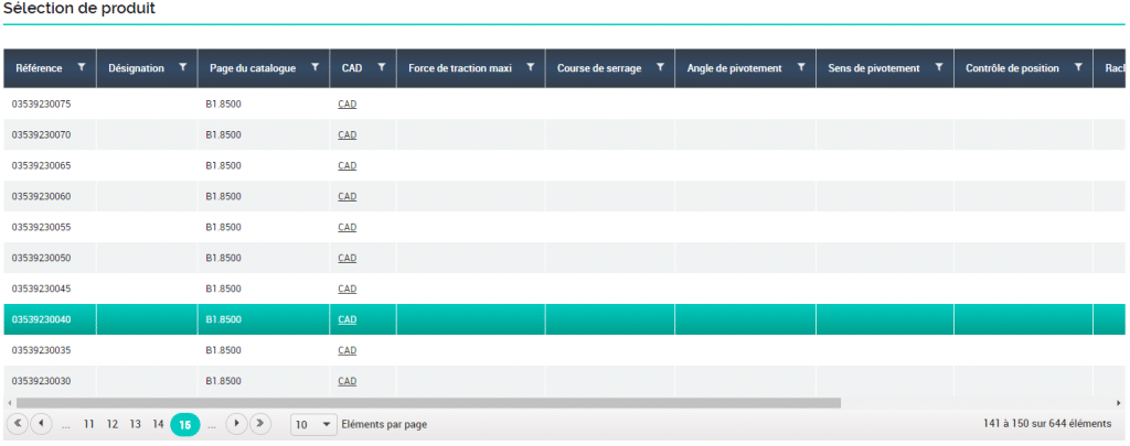 In base ai dati tecnici scelti dall’utente del prodotto, la tabella di configurazione si adatta per consentire la selezione precisa di un riferimento.
