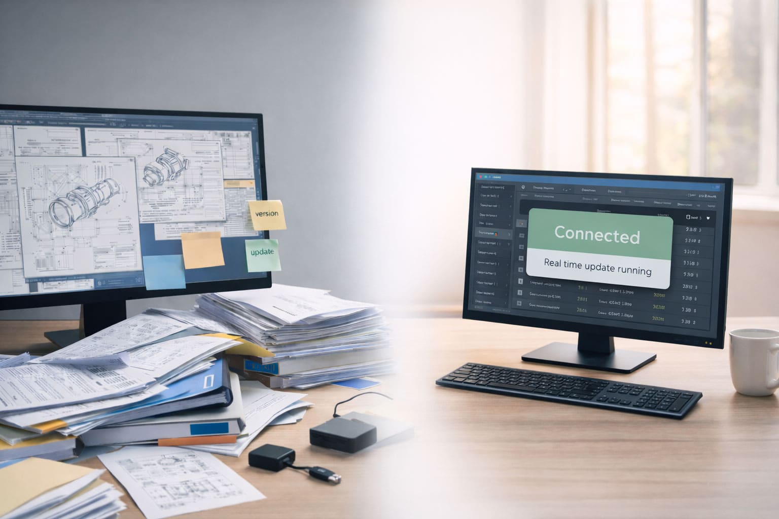 Per il cliente, questo creava incertezza. Quando un ingegnere scaricava un modello, non c’era alcuna garanzia che rappresentasse il prodotto effettivamente in produzione. Il risultato era inefficienza e frustrazione per tutti gli attori coinvolti.