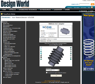 Wilton, New Hampshire – October 16, 2007 – TraceParts, a leading global supplier of 3D Engineering Content, announced today a partnership with WTWH Media, publishers of Design World magazine and Design World Online. Through this partnership, component manufacturers will have access to online 3D product catalogs that will provide engineers and designers with free access to the manufacturer’s products through Design World Online, tracepartsonline.net and other popular web sites.