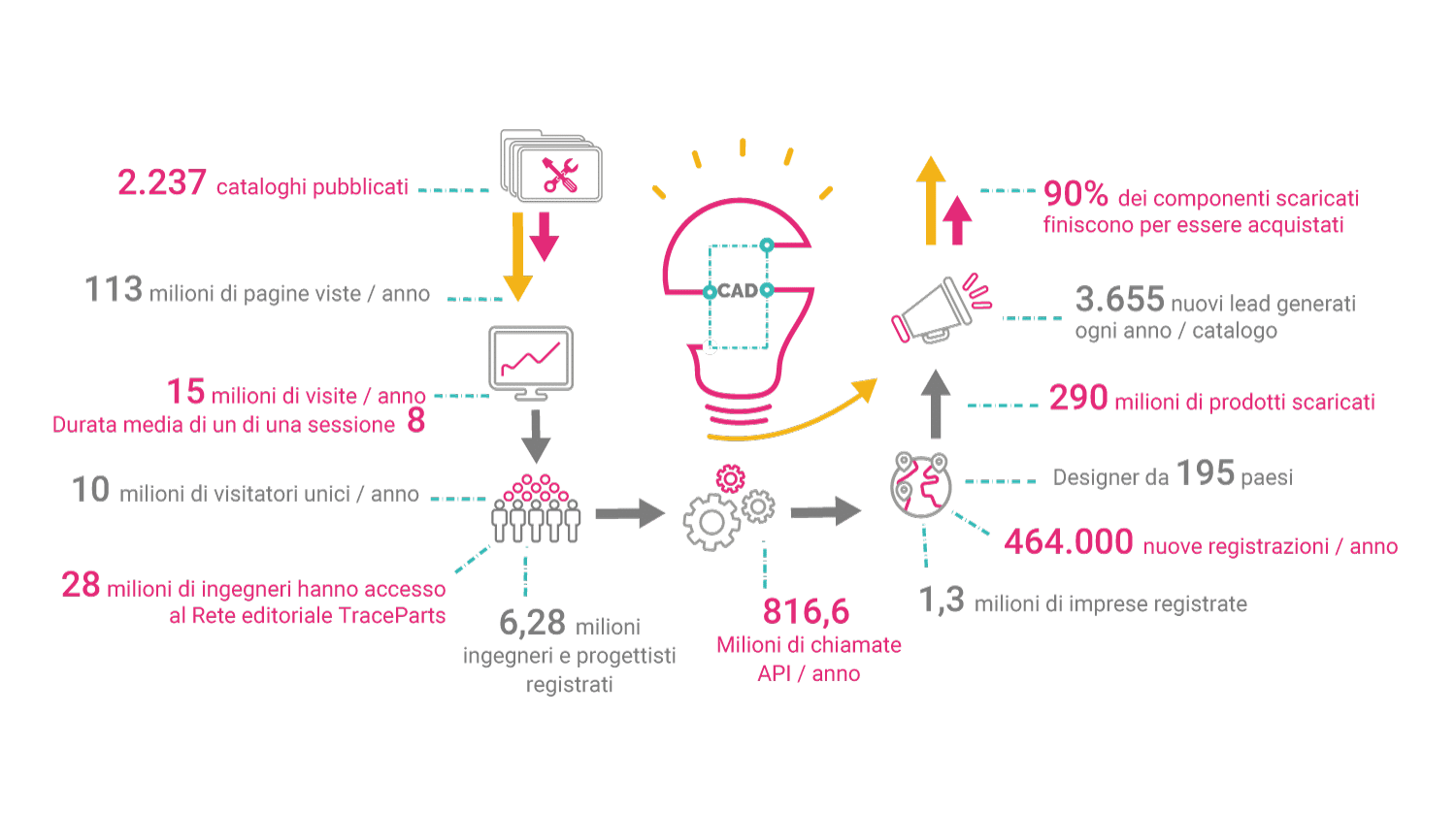 Questi professionisti utilizzano TraceParts 24 ore su 24, 7 giorni su 7, per scaricare gratuitamente centinaia di milioni di componenti da inserire direttamente nei loro progetti. Quando viene scaricato un prodotto, i fornitori ricevono informazioni dettagliate sull’utente che ha effettuato il download. In questo modo, i team addetti alle vendite e il CRM possono disporre di contatti altamente qualifica