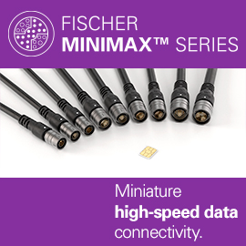3 new Fischer MiniMaxโ„ข ultra-miniature, high-density solutions with new options in pin layout, body size and data speed: 7 contacts (4x signal, 3x power) in ร˜ 10 mm receptacle with configuration up to 22 AWG | 12 contacts in ร˜ 14 mm with USB 3.2 Gen 2 (10 Gbit/s, 1 m) and power up to 8A | 30 contacts (24x signal, 6x power) in just ร˜ 14 mm!