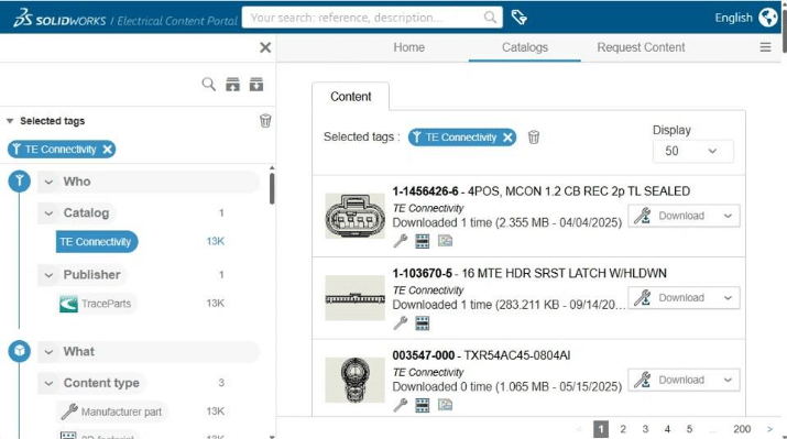 TraceParts & SOLIDWORKS Electrical Collaboration: Integrating the TE Connectivity catalog into the Electrical Content Portal (ECP)