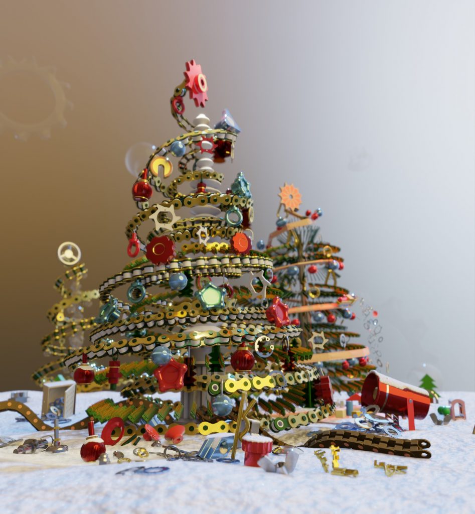 The contestants had the challenging task of designing a special Christmas Tree using the CAD or image processing software of their choice. The Christmas Tree was to be created using as many standard machine parts as possible found on the TraceParts platform. Special points were given for using parts coming from the Schneider Electric catalog.