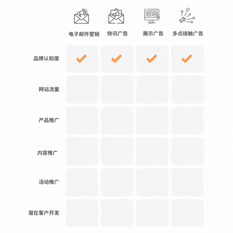 - 跨渠道多点接触广告: 通过定向广告、电子邮件营销活动等方式扩大受众范围——确保买家旅程各个阶段均能多渠道展示您的品牌。